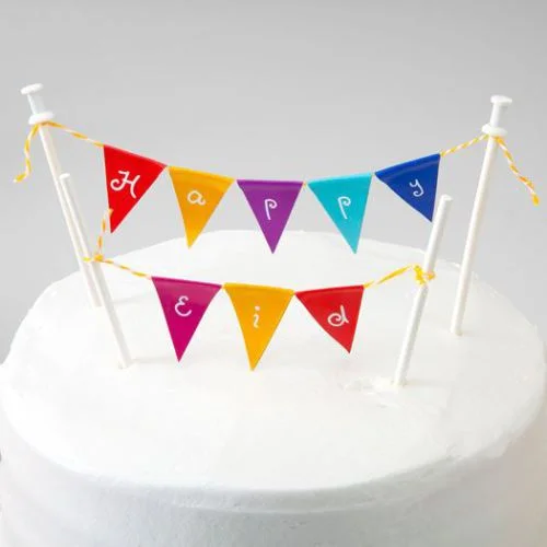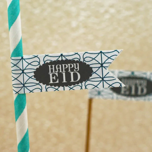 11. Happy Eid Flag Stickers: For a mod but fun look, consider topping off your appetizers or desserts with these charming flag stickers. Pair them with colorful straws, toothpicks or skewers to add style to any food item. (via Modern Eid)