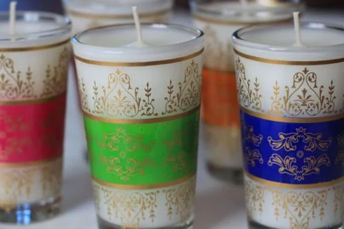 16. Tea Cup Candles: Tap into your inner creativity and make some pretty candles to light up your dining table. Use decorative tea glasses to add a fancy touch. Your guests will be sure to appreciate the candlelight dinner. (via Ramadan Joy)